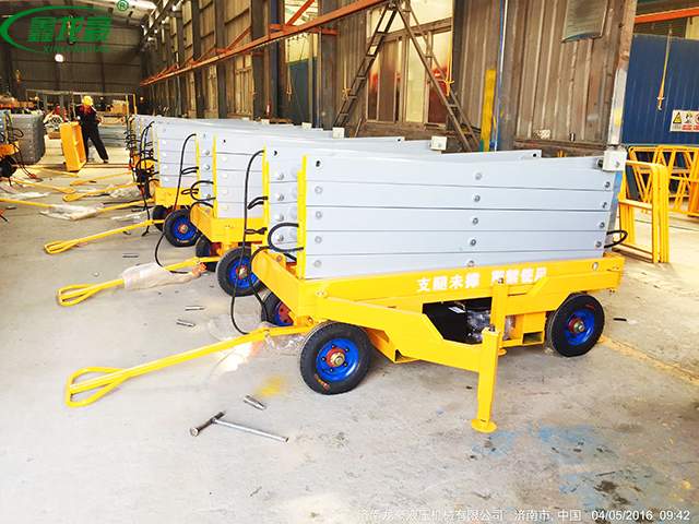 移動剪叉式升降平臺主要技術(shù)特點:臺面鋼板折彎、底架及剪叉結(jié)構(gòu)山鋼定做高強(qiáng)度矩形管材; 標(biāo)準(zhǔn)冷彎槽做道軌,使用尼龍滑塊做導(dǎo)軌輪,接觸面大,升降平穩(wěn),晃動??;液壓油缸 內(nèi)置防爆閥(防止油管斷裂,平臺失速下降),采用進(jìn)口密封圈,經(jīng)久耐用,不泄露;雙層鋼網(wǎng)高壓油管;升降機(jī)專用液壓泵站,加裝應(yīng)急下降閥,平臺斷電可手動控制 下降,內(nèi)置溢流閥,可防止上行運動時系統(tǒng)壓力過高,起到超載保護(hù)功能;充氣橡膠輪胎; 電路電器、接觸器羅列連接,加裝熱過載保護(hù),缺相保護(hù)等安全保護(hù)功能;電動上、下電動控制,控制按鈕盒加裝急停按鈕,以保障財產(chǎn)及人身安全,各操作部分使用24V安全控制電壓;軸銷圓鋼配做,調(diào)質(zhì)處理;拋丸、噴砂 除銹處理,除去鋼結(jié)構(gòu)構(gòu)件表面的銹蝕及焊接飛濺,能使鋼構(gòu)件表面產(chǎn)生一定程度的凹凸不平的效果,增大粉末的附著力;使用靜電粉末噴涂;涂層外觀質(zhì)量優(yōu)異,附著力及機(jī)械強(qiáng)度強(qiáng),色澤亮度高,經(jīng)久不褪色。